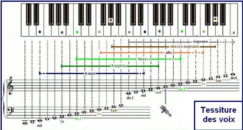 On appelle l'écart entre la note la plus grave et la note la plus haute chantée par une voix la tessiture.