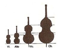 Puis viennent par ordre de taille décroissant : le violoncelle, violon alto, violon.